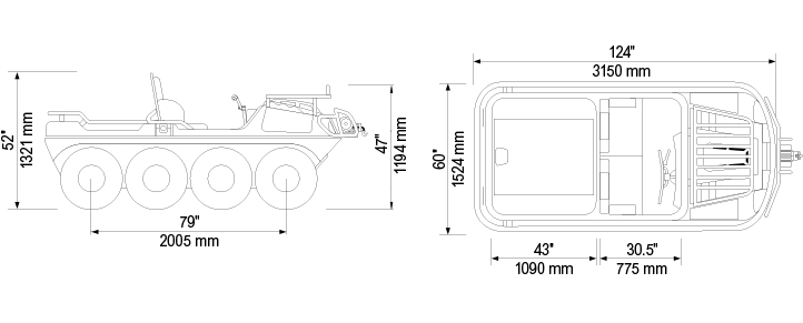 Az Avenger 8x8 Hunt Master négyütemű OHV V-Twin EFI benzinmotorral, elektromos önindítóval, valamint folyadékhűtéses Kohler Aegis LH 775 motorral felszerelt kétéltű extrém terepviszonyokra tervezett jármű. Akár 453 kg (1000 font) teherbírás szárazföldön, 408 kg (900 font) teherbírás vízen, 6 utas szállítása szárazföldön, 4 utas szállítása vízen, valamint 816 kg (1800 font) vontatási kapacitás.