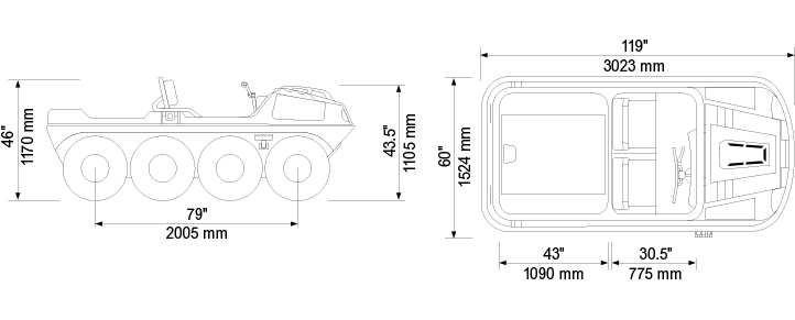 Az Avenger 8x8 STX négyütemű OHV V-Twin EFI benzinmotorral, elektromos önindítóval, valamint folyadékhűtéses Kohler Aegis LH 775 motorral felszerelt kétéltű extrém terepviszonyokra tervezett jármű. Akár 453 kg (1000 font) teherbírás szárazföldön, 408 kg (900 font) teherbírás vízen, 6 utas szállítása szárazföldön, 4 utas szállítása vízen, valamint 816 kg (1800 font) vontatási kapacitás.